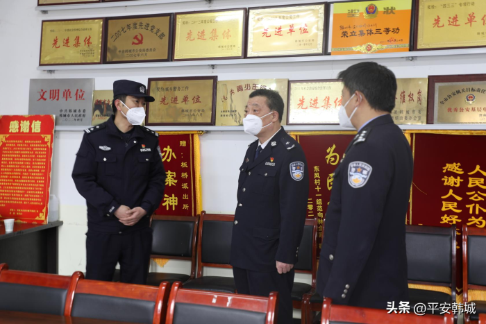 在板桥派出所,张鑫副局长听取了冯伟所长的工作汇报,询问了派出所2022年的工作情况和队伍情况,详细了解一线民、辅警的工作生活,对民警辅警默默坚守山区、服务乡村百姓,确保一方安定所做出的辛勤付出给予充分肯定。张鑫强调要按照“枫桥式公安派出所”建设标准,进一步聚焦矛盾化解、平安守护、服务群众,多举措夯实基层基础,确保矛盾纠纷化解在源头、化解在基层,做到“矛盾不上交,平安不出事,服务不缺位”。板桥派出所全体民辅警表态,感谢渭南市局党委关心和厚爱,将继续发扬忠诚担当、艰苦奋斗的优良作风,全面确保辖区人民群众度过一个平安祥和的新春佳节。