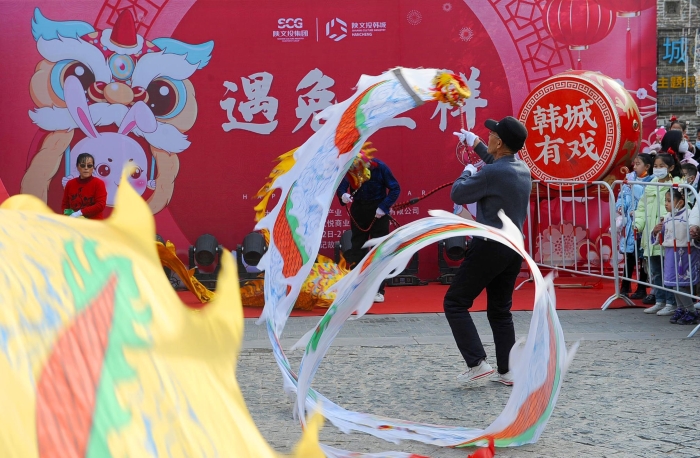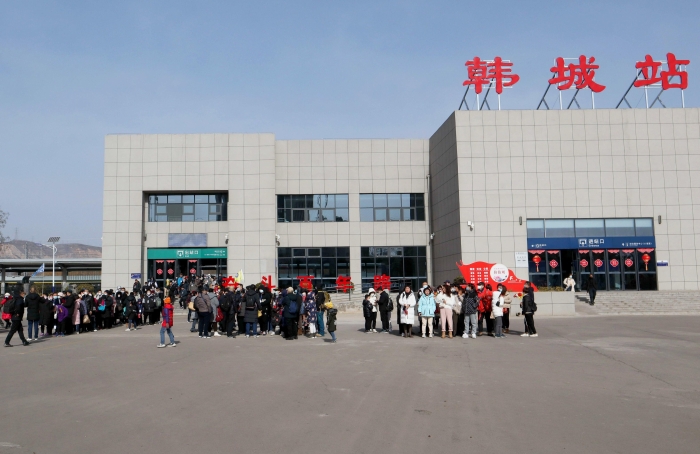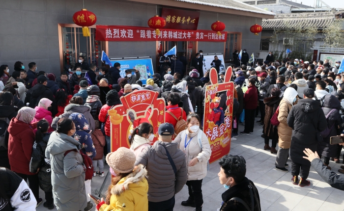 正值兔年新春佳节,23日大年初二12:06,首批乘坐“韩城过大年”定制列车的400多名游客,满怀期待地走出韩城火车站,作为“东道主”的韩城为他们举行了热情洋溢的欢迎仪式,并推出了全新升级版“古城环线游”,给春节来韩城过大年的游客“一步一景”的体验。欢迎仪式后,游客们从游客中心出发,沿着新开辟的“古城环线游”线路,依次游览古城三庙,请一炷寓意美好的香,许下一个关于幸福的心愿。随后,移步民俗博物馆,欣赏非遗展览,确保大家不走回头路、不漏一个点。