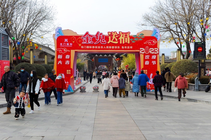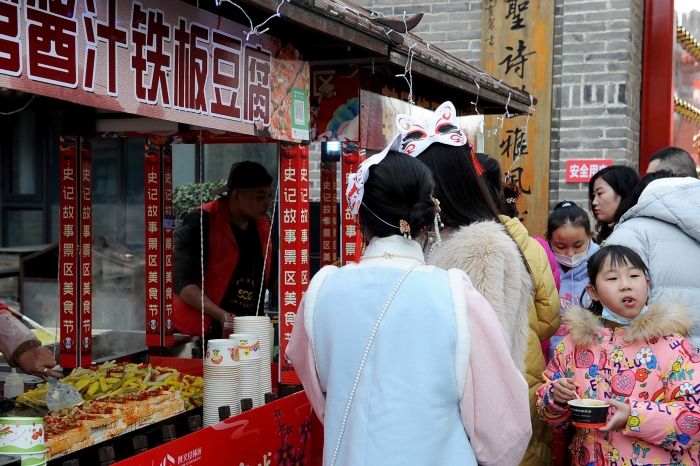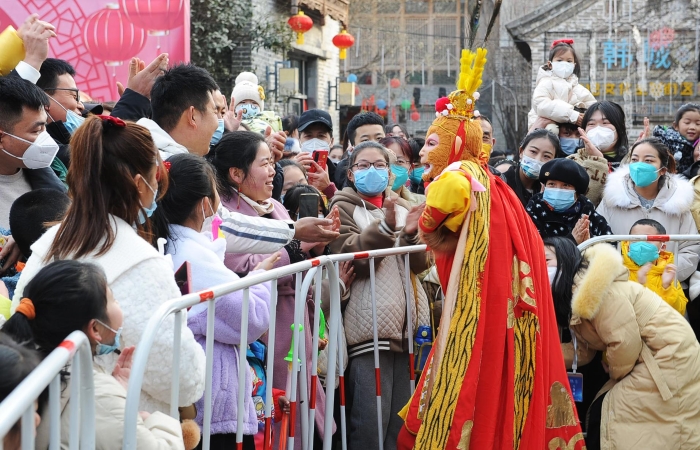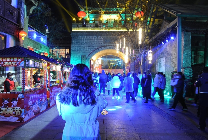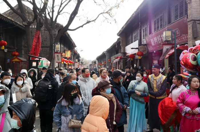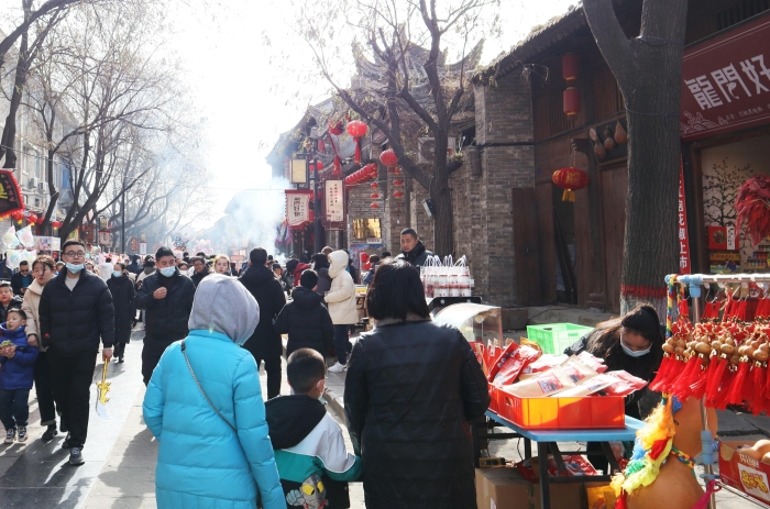 游客体验古城景区浓厚的文化氛围年味