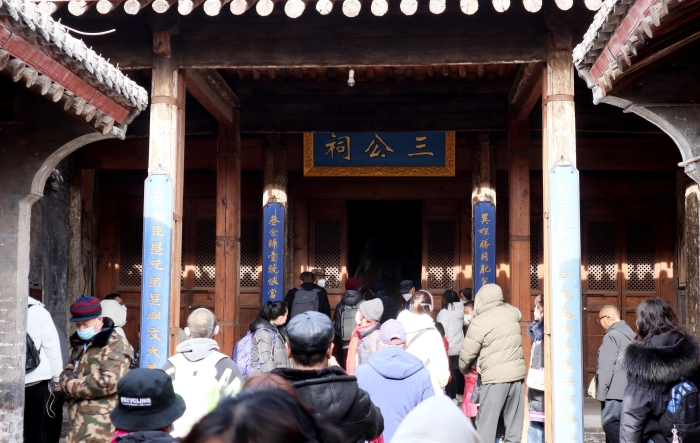 游客游览古城三庙关公祠