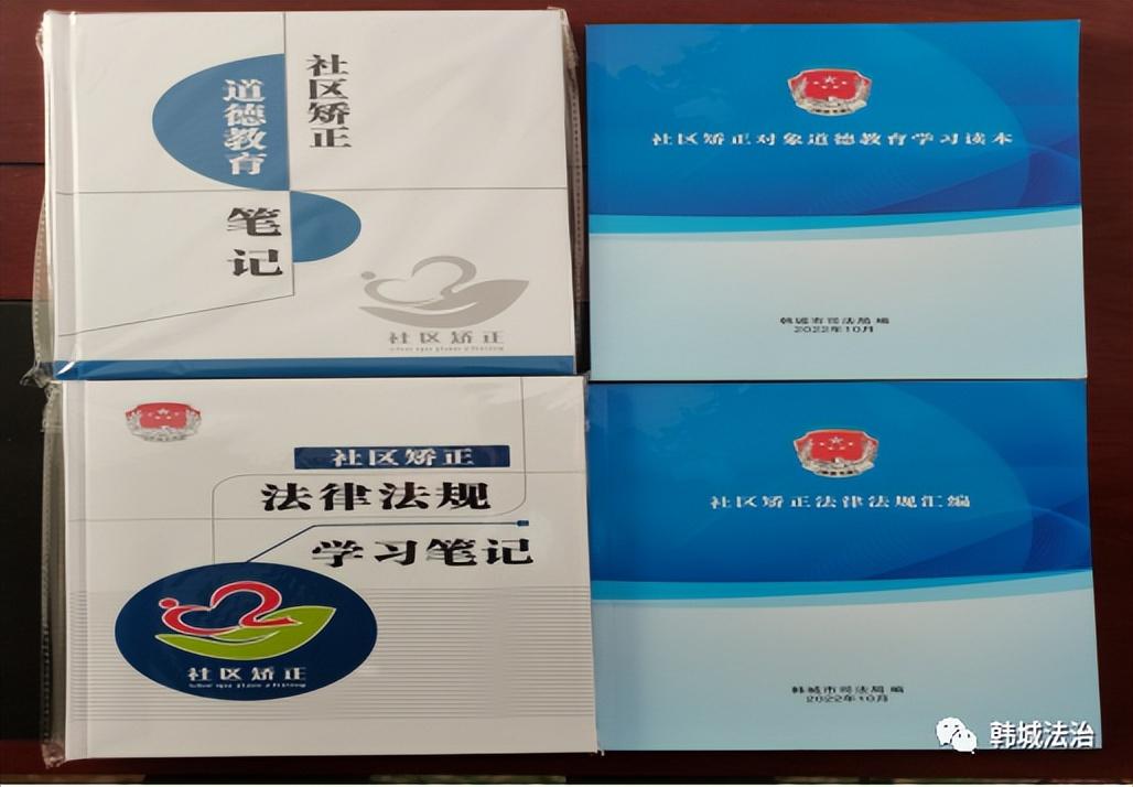 今年以来,针对社区矫正对象教育学习形式单一、效果不明显等问题,为丰富学习内容,提高社区矫正对象教育学习的针对性和学习效果,韩城市司法局编印下发了《韩城市社区矫正法律法规汇编》、《韩城市社区矫正对象道德教育学习读本》,配发了学习笔记。