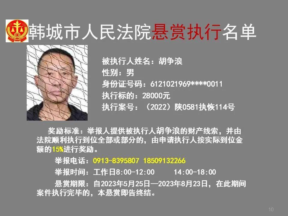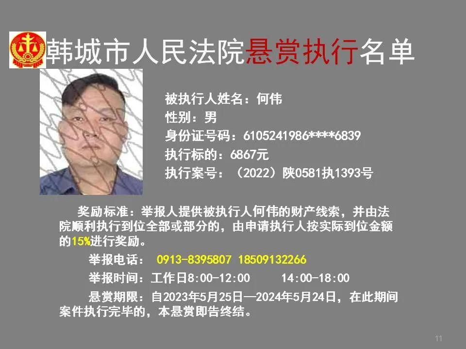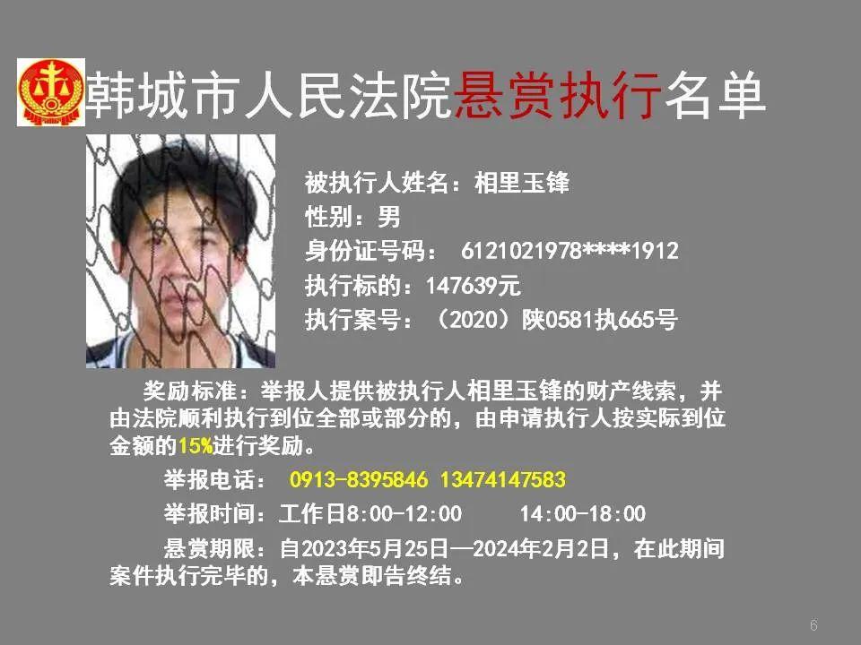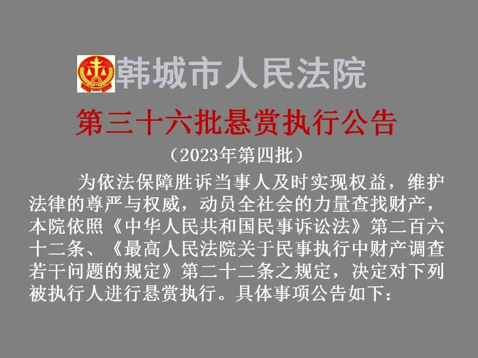 韩城法院公布2023年第四批悬赏执行名单