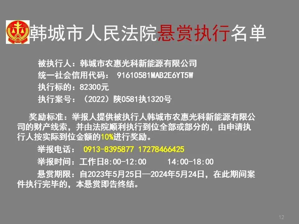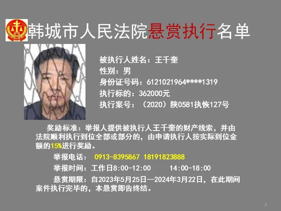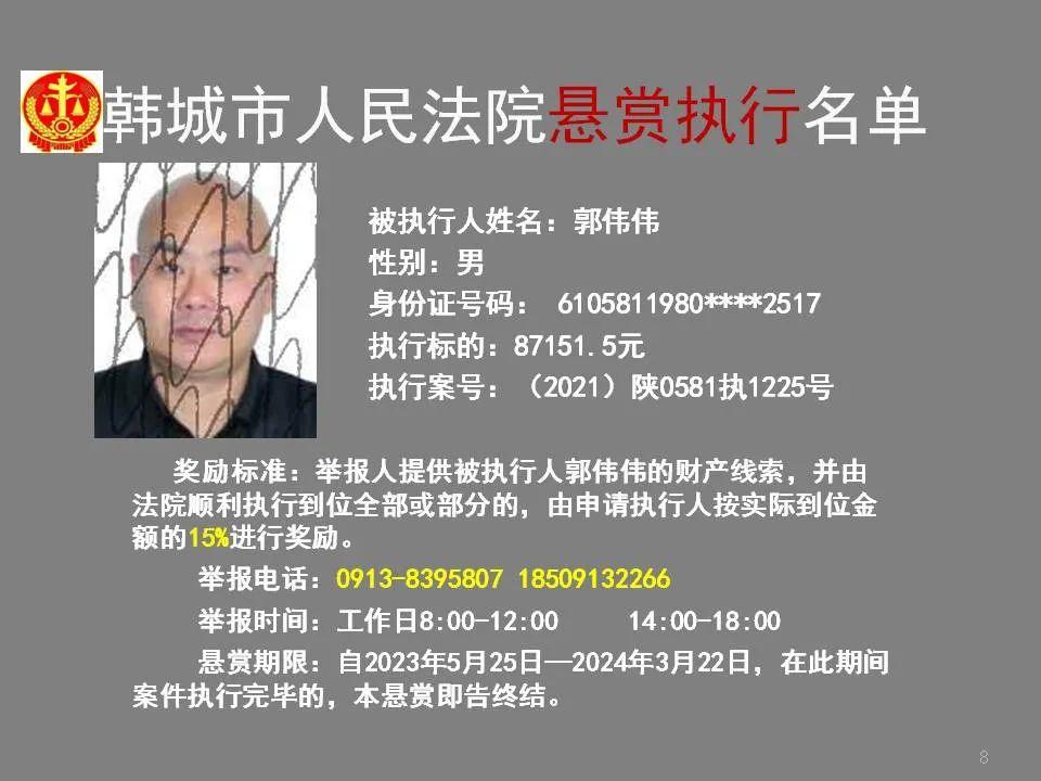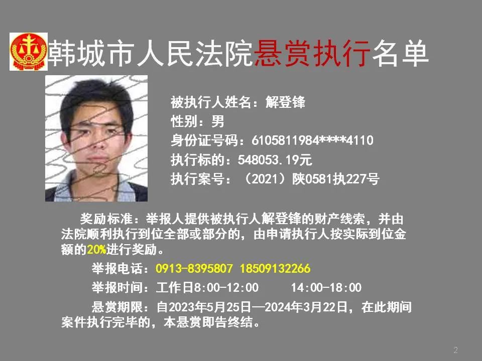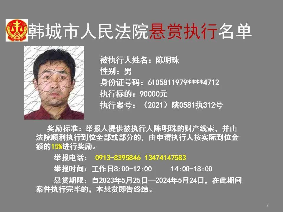 韩城法院公布2023年第四批悬赏执行名单