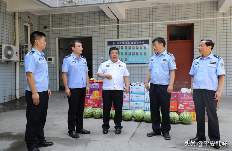 连日来,炎炎烈日下、滚滚热浪中,韩城公安一线民辅警战高温、斗酷暑,大力推进夏季治安打击整治行动,坚守在打击犯罪、警情处置、夜间巡逻、走访宣传、服务群众等各个岗位上,守护着人民群众生命财产安全。8月3日,韩城市副市长、公安局党委书记、局长师正利带队,慰问坚守一线的民辅警,为他们送清凉,鼓干劲。