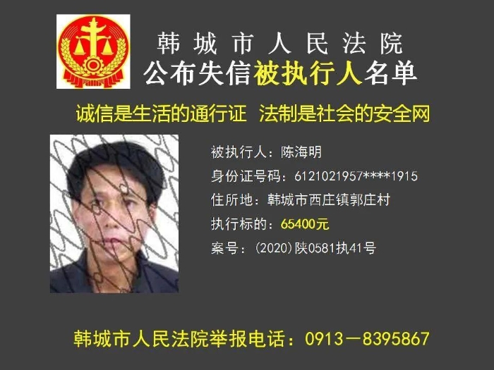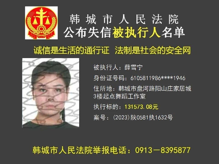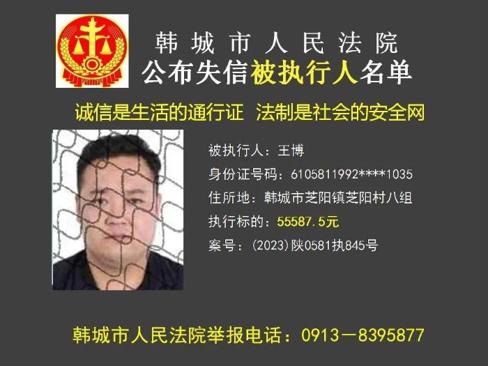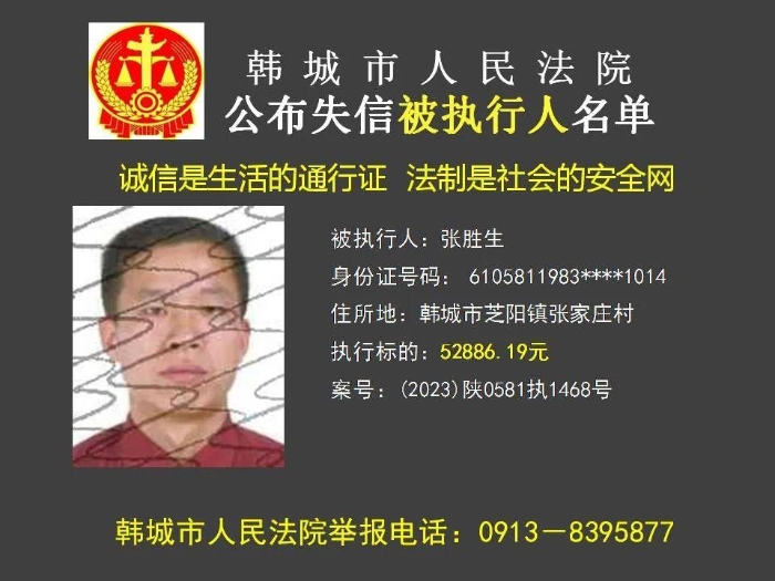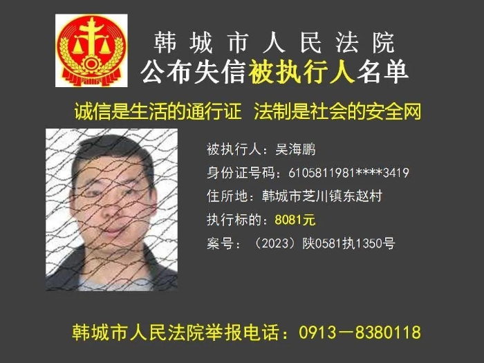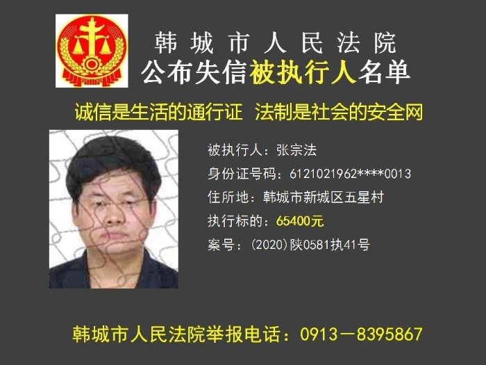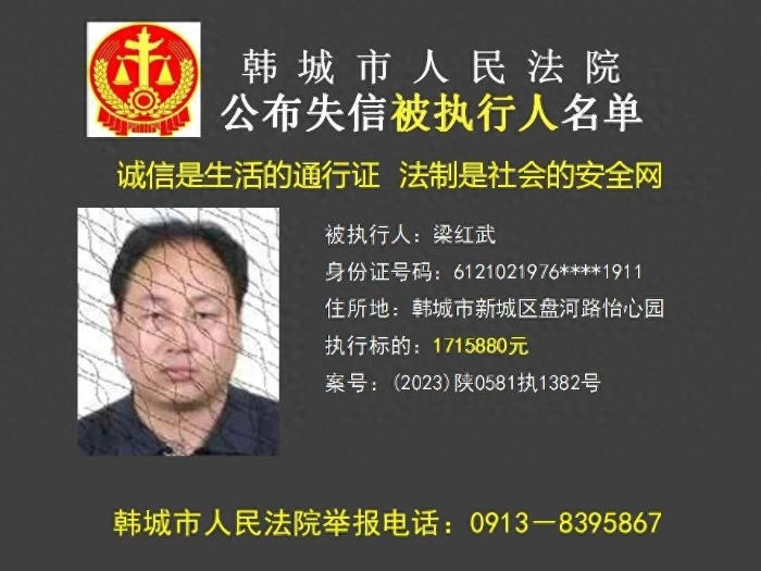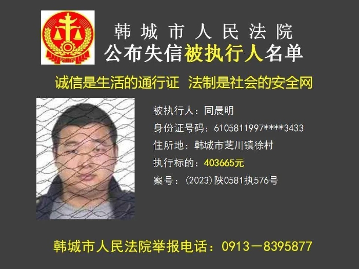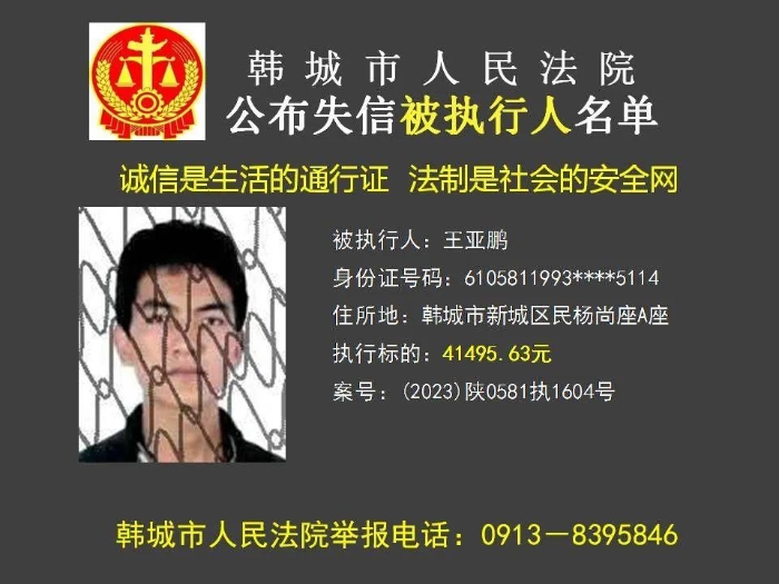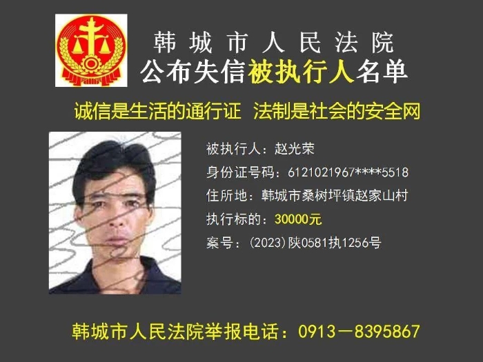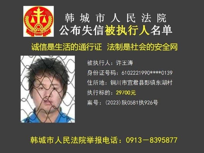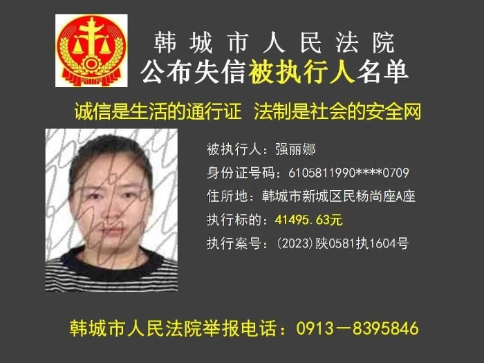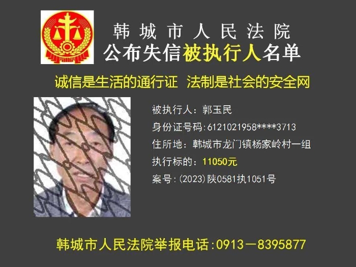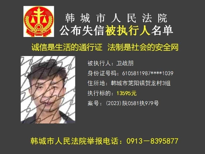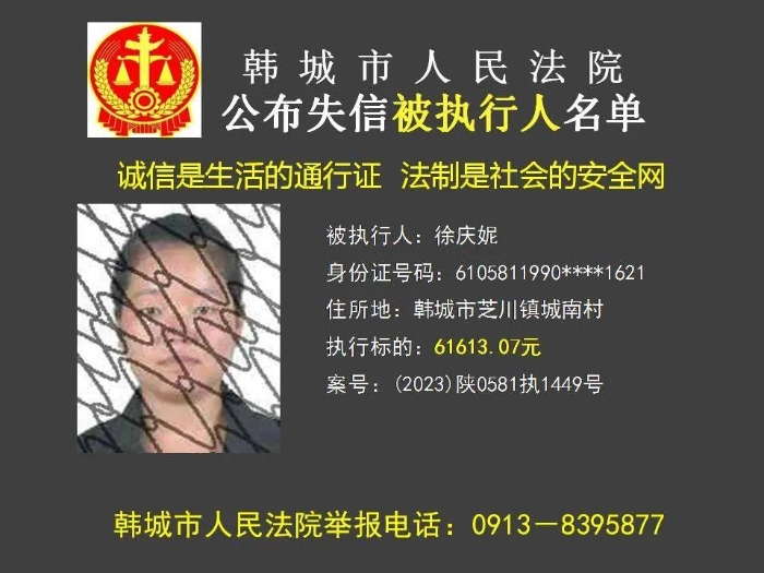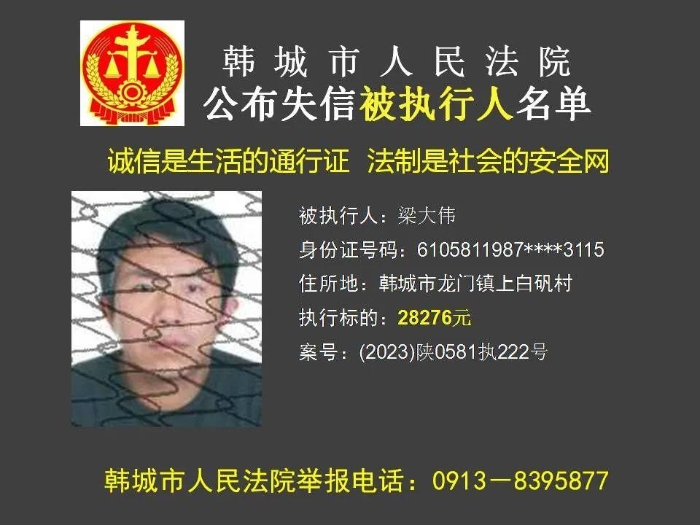 韩城法院公布2023年第11批失信被执行人名单