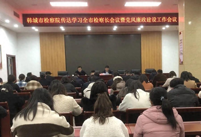3月4日,韩城市人民检察院召开全院干警大会,传达学习全市检察长会议暨党风廉政建设工作会议精神。