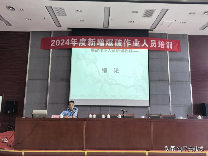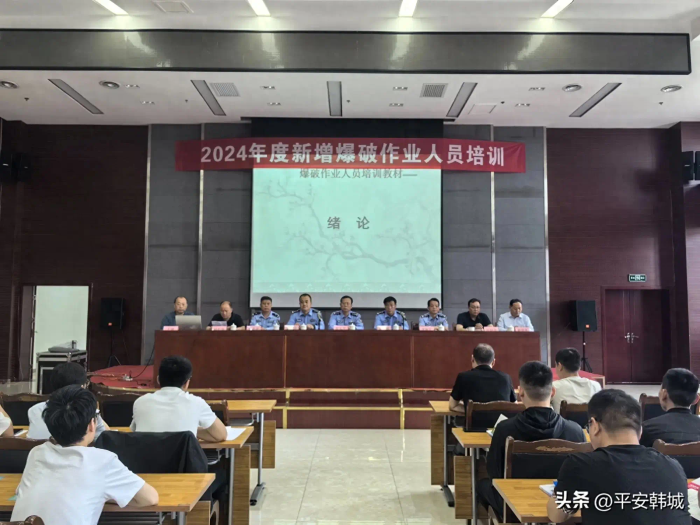 5月8日,韩城市公安局组织、韩城市永安爆破服务有限责任公司承办的2024年度韩城市新增爆破作业人员培训班在韩城市经开区开班。渭南市公安局治安支队副支队长张永平、韩城市公安局党委副书记康敏锋、渭南市工程爆破协会会长屈晓华,以及80余名初训人员参加了开班仪式。