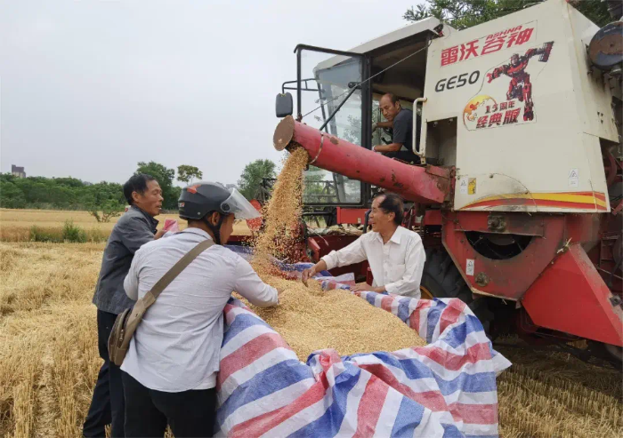 风吹麦浪满地香,机声隆隆收获忙。在新城街道姚庄村小麦种植区,麦浪滚滚,几台联合收割机正在麦田里作业,抢抓晴好天气全力收割着金黄的麦粒,确保夏粮颗粒归仓。市农机中心技术人员也来到地头,检测小麦机收减损情况,开展农机安全检查巡查工作。