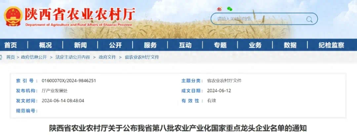 近日,由农业农村部、国家发展改革委、商务部、中国人民银行、中国证券监督管理委员会、中华全国供销合作总社六部委日前联合印发《关于公布第八批农业产业化国家重点龙头企业名单的通知》,陕西省11家企业入选,我市金太阳花椒油脂药料有限责任公司入选。