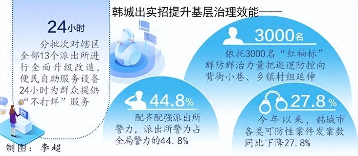 为全面掌握辖区重点区域、重点部位的治安情况,公安局推动“大数据+铁脚板”深度融合,汇聚多方社会资源,依托防控平台,实现信息数据收集、预警信息推送、重点信息汇聚的全面触角延伸。对乔南派出所辖区校园试点推行“地网工程”,加快“智慧校园”建设。同时,依托“AI+视频”技术,实现“智慧校园”立体化防控、精准化预防,为平安防控提供有力支撑。此外,还打造“一窗通办、一网通办、一次办好”服务体系,全面推行“网上办”“掌上办”“不见面审批”等“零跑腿”服务模式,并依托“渭南治安”小程序对出租房屋、网约房、“低慢小”飞行器等高频事项进行自助申报,实现15项行政审批事项全程网办、不见面审批,有效打通网上服务“最后一公里”,极大地节省了群众和企业办事时间和成本,真正用“服务指数”换来群众“满意指数”。