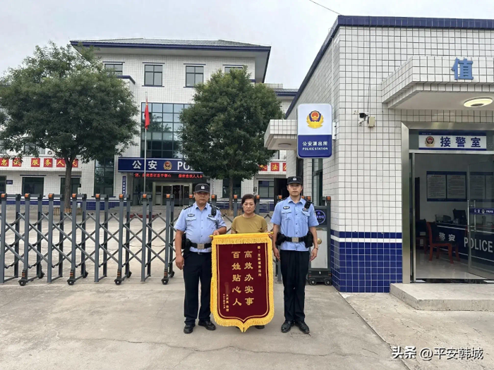 “谢谢你们帮我找回了孩子,可把我们急坏了,要是走丢了,后果真是不敢想象啊。”8月24日,辖区群众强女士将一面印有“高效办实事,百姓贴心人”的锦旗送到韩城市公安局芝阳派出所,以表达对民警快速帮其寻回走失孩子的感激之情。