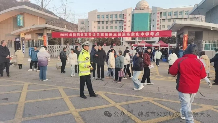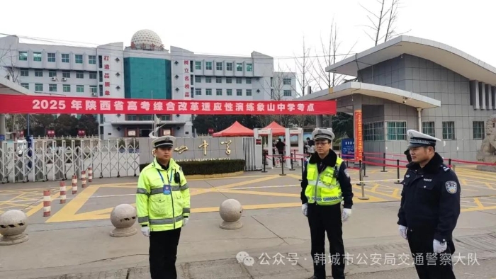 为确保2025年普通高考综合改革性测试安全、有序进行,韩城市公安局交通警察大队提前部署、精心组织、狠抓落实,结合辖区考点周边道路交通实际,全力以赴,圆满完成“实战演练”安保工作。