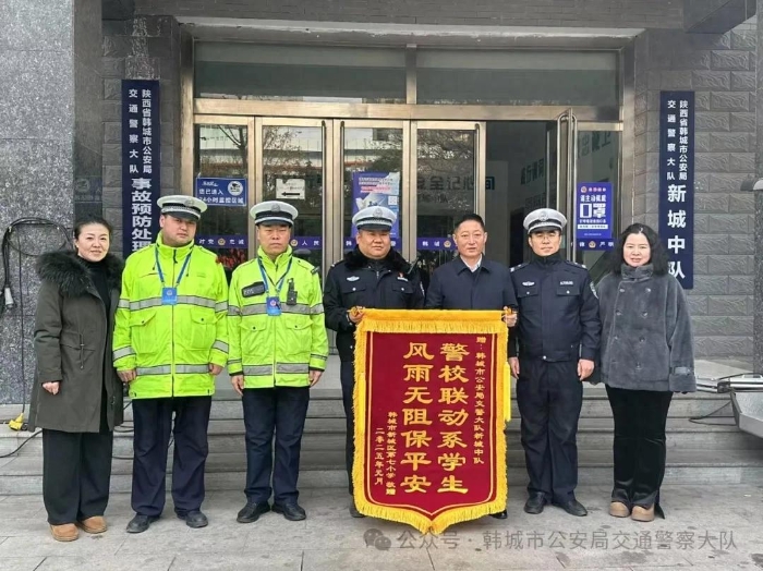 在第五个人民警察节这个特殊的日子里,在韩城市公安局交警大队新城中队,一面锦旗闪耀着别样的光彩。“警校联动系学生,风雨无阻保平安”,寥寥数语,承载着新城七小学校对韩城市公安局交警大队新城中队满满的感激与敬意。