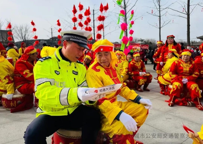 一位锣鼓队大爷接过汤圆和宣传品后,激动地说:“交警同志辛苦啦!过节还想着我们,不仅给我们送汤圆,还不忘给我们普及交通安全知识。这些知识太重要了,我们一定牢记在心,遵守交通规则。”