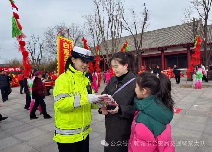 在元宵节这个阖家团圆、喜庆祥和的日子里,韩城市的大街小巷热闹非凡。欢快的锣鼓声、此起彼伏的欢笑声交织在一起,处处洋溢着节日的欢乐氛围。2月12日,韩城市公安局交警大队借助元宵佳节的热闹氛围,组织警力在辖区内开展交通安全宣传活动,为群众送去温暖与关怀。