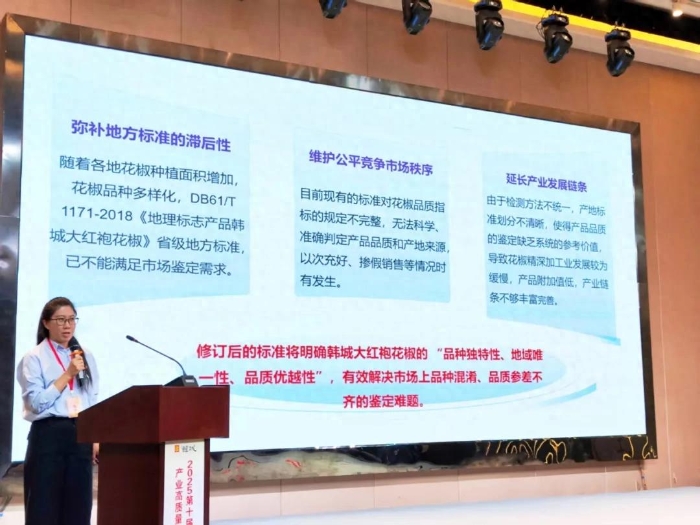 9月26日,2025第十届韩城花椒产业高质量发展大会顺利举行。会上发布了《地理标志产品质量要求 韩城大红袍花椒》标准,该标准将明确韩城大红袍花椒的“品种独特性、地域唯一性、品质优越性”,有效解决市场上品种混淆、品质参差不齐的鉴定难题。