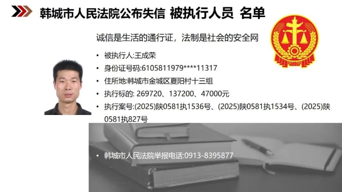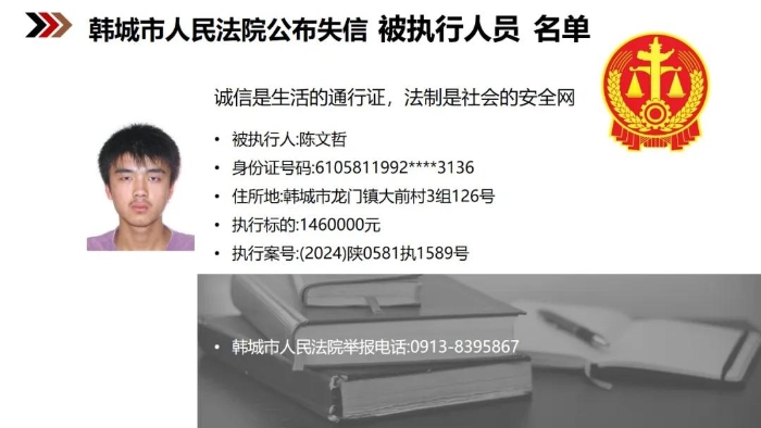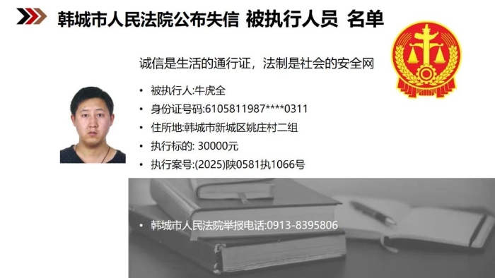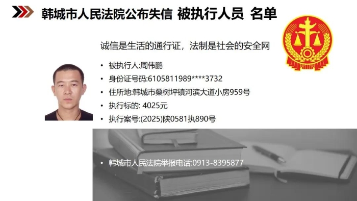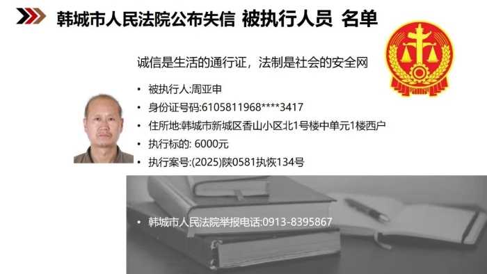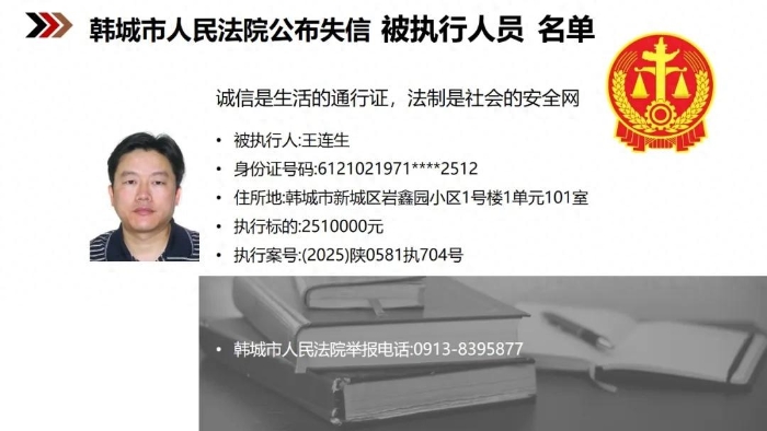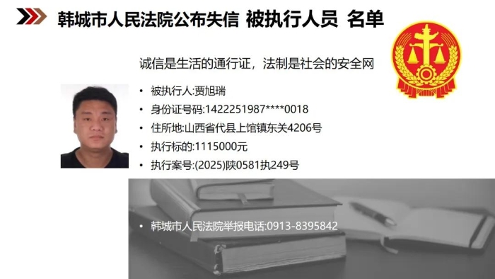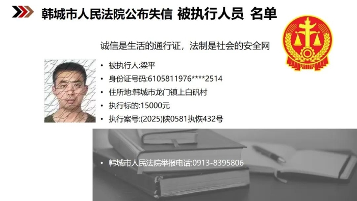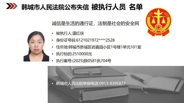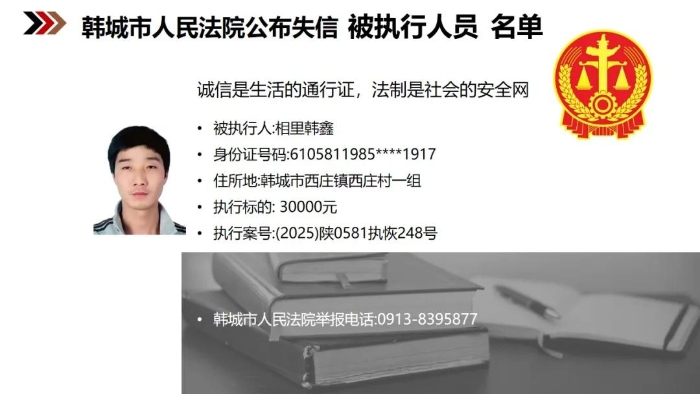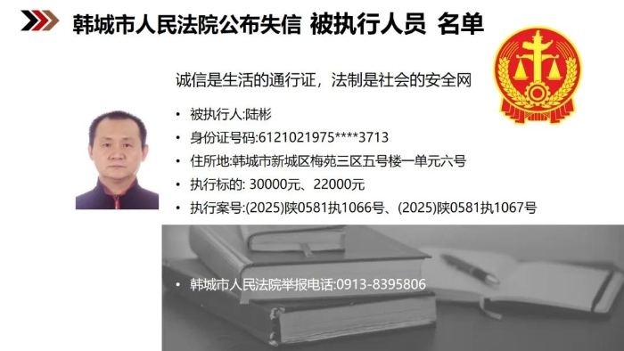 【曝光台】韩城法院公布2025年第9批失信被执行人名单