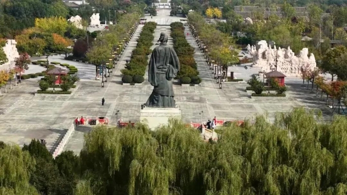 踏入司马迁祠景区,瞬间就会被这里独特的历史氛围所震撼。规模宏大的塑雕广场中央,矗立着高12米的司马迁青铜雕像,庄重威严,令人肃然起敬。