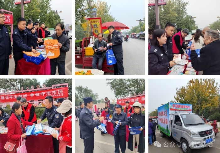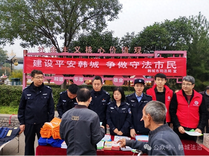 11月6日,韩城市司法局西庄司法所联合局社区矫正科、普法宣传科、行政复议应诉科、西庄派出所和镇平安法治办公室,在西庄街道开展了以“建设平安韩城,争做守法市民”为主题的平安建设集中宣传活动。