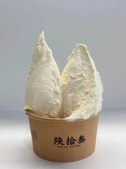 这次陕拾叁的跨界尝试,正是看中了韩城大红袍花椒的独特风味。“我们筛选了多个产地的花椒,最终还是选择了韩城大红袍,它的香气和口感都更适合搭配甜品。”品牌经理李利娜介绍道。这款花椒冰酪以优质奶油为基底,融入研磨后的花椒粉,再搭配新鲜菠萝增加果香层次。一口下去,先是奶味的丝滑醇厚,接着是菠萝的酸甜在舌尖化开,最后花椒的微麻缓缓袭来,三种风味在口腔中完美融合,既有传统味觉的熟悉感,又有创新搭配的惊喜感,让人越吃越上头。