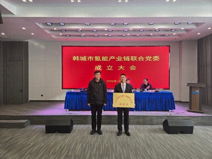 会议宣读了《关于开展产业链党建试点工作的指导意见》《关于同意成立中共韩城市氢能产业链联合委员会的批复》和《关于成立氢能产业链联合党委的实施方案》,向韩城市氢能产业链联合党委办公室授牌,工信局、经开区、陕西旭强瑞清洁能源集团有限公司就服务产业链发展作交流发言。