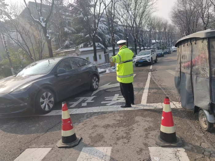 节日当天,交警提前研判路况,科学部署警力,重点在城区主干道、商圈周边、景区出入口及高速路口等车流密集区域设置执勤点位,采取“定点疏导+动态巡逻”相结合模式,全力维护交通秩序。执勤民警顶风冒寒,规范指挥疏导车流,引导车辆有序通行,及时劝阻不文明交通行为,有效防范交通拥堵。