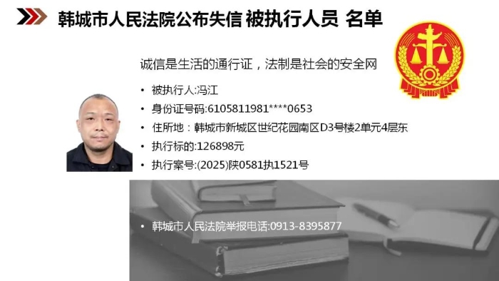 【曝光台】韩城法院公布2026年第1批失信被执行人名单