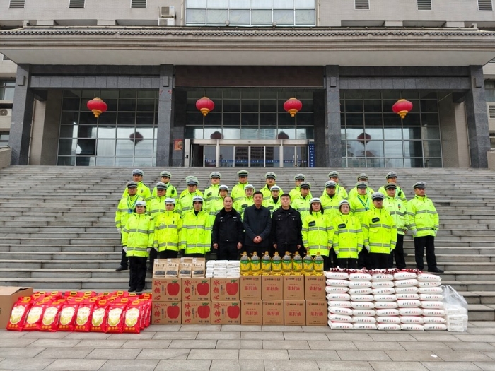 陕西网讯(通讯员 王静)临近春节年味渐浓,岁寒情暖关怀相伴。2026年2月3日上午,韩城市总工会常务副主席赵少强一行专程来到韩城市公安局交管大队,开展春节前走访慰问活动,为坚守在道路交通安全管理一线的民辅警送上米面油等慰问物资,传递工会组织的深切关怀与新春美好祝福。