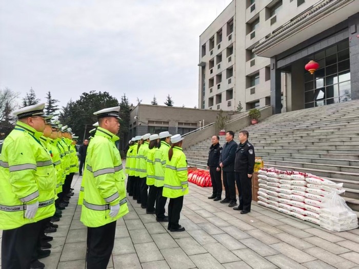 道路交通安全管理是城市运转的“生命线”,公安交警是守护群众出行安全的“主力军”。韩城市公安局交管大队全体民辅警,始终在市委、市政府和市公安局党委的坚强领导下,坚守在路面管控、疏堵保畅、事故预防、春运安保、服务群众的最前沿,顶烈日、冒严寒、战风雨,用日复一日的坚守诠释责任担当,以专业高效的履职保障辖区道路安全畅通,为维护社会大局稳定、服务经济社会发展作出了重要贡献。慰问现场,赵少强与民辅警亲切交谈,详细询问春运安保工作进展及民辅警工作生活情况。他指出,春运启动以来,全体民辅警放弃休息、加班加点,连续奋战在疏堵保畅第一线,用汗水筑牢道路安全防线,用坚守守护群众平安团圆,这种“舍小家为大家”的奉献精神值得全社会学习和敬重。值此新春来临之际,谨代表韩城市总工会向大家致以诚挚问候,感谢大家为全市道路交通秩序稳定付出的辛勤努力。