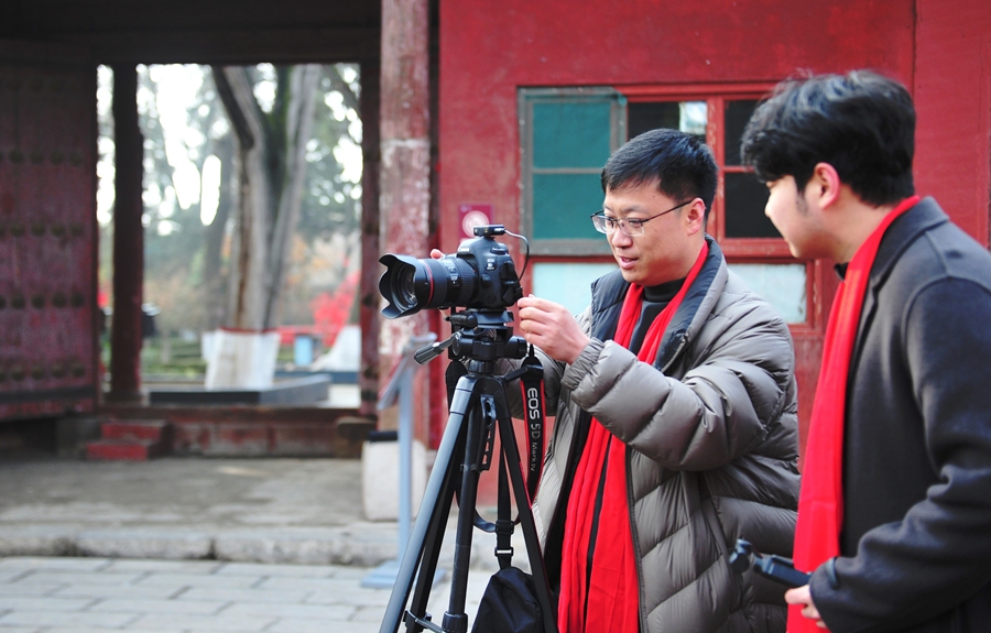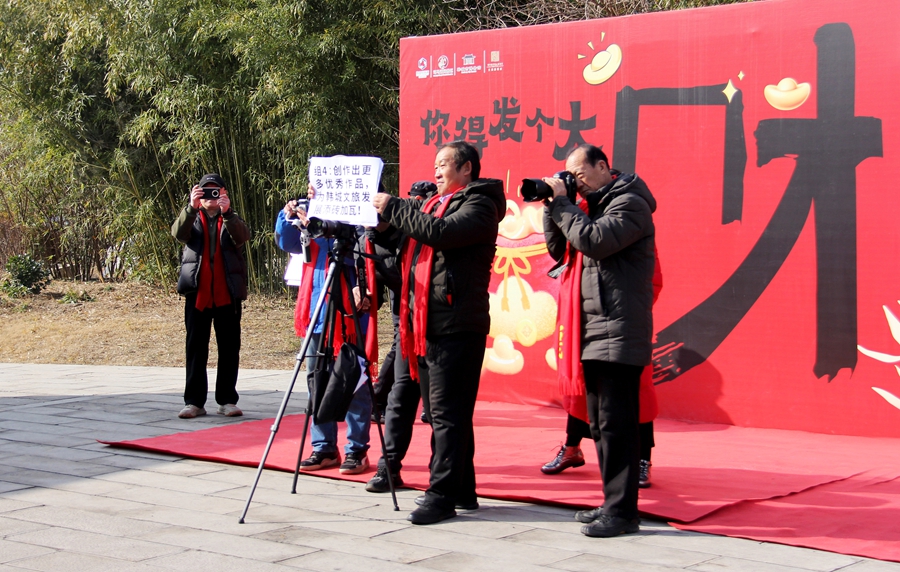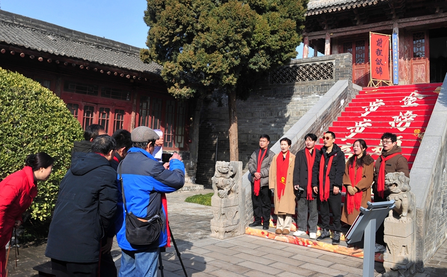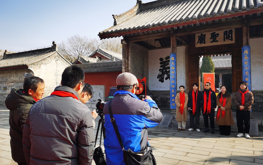 在古城三庙的红墙黛瓦间,五龙壁的琉璃在阳光下流转着千年的光泽,明伦堂的匾额承载着文脉的厚重,尊经阁的飞檐与祈福红带相映成趣。会员们身着新衣、颈系红围巾,在古建与光影间穿梭,用镜头定格“状元桥”的步步高升,用快门捕捉“大成殿”的庄严肃穆。会长刘玉虎的新春祝福透过镜头传遍四方:“骏马奔腾启新程,光影逐梦赴春来”,每一句问候都饱含着对韩城文旅的深情。会员们分组接力拜年,镜头里是古城的烟火年味,是文物的历史风华,是黄河岸的壮阔风光,也是非遗民俗的鲜活魅力。