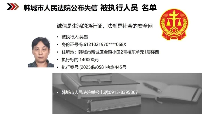 【曝光台】韩城法院公布2026年第2批失信被执行人名单